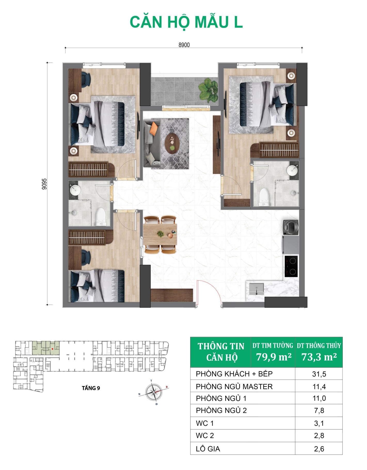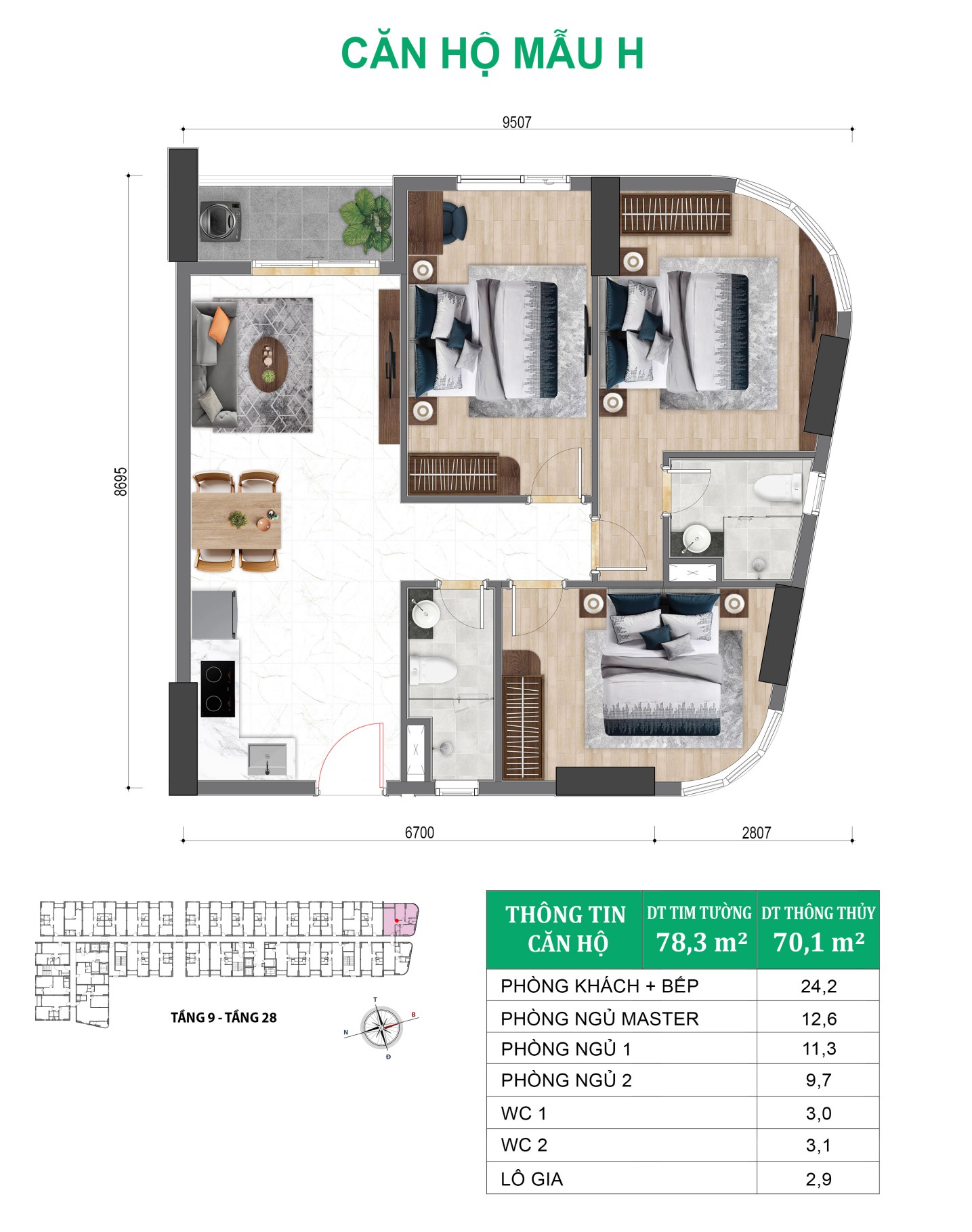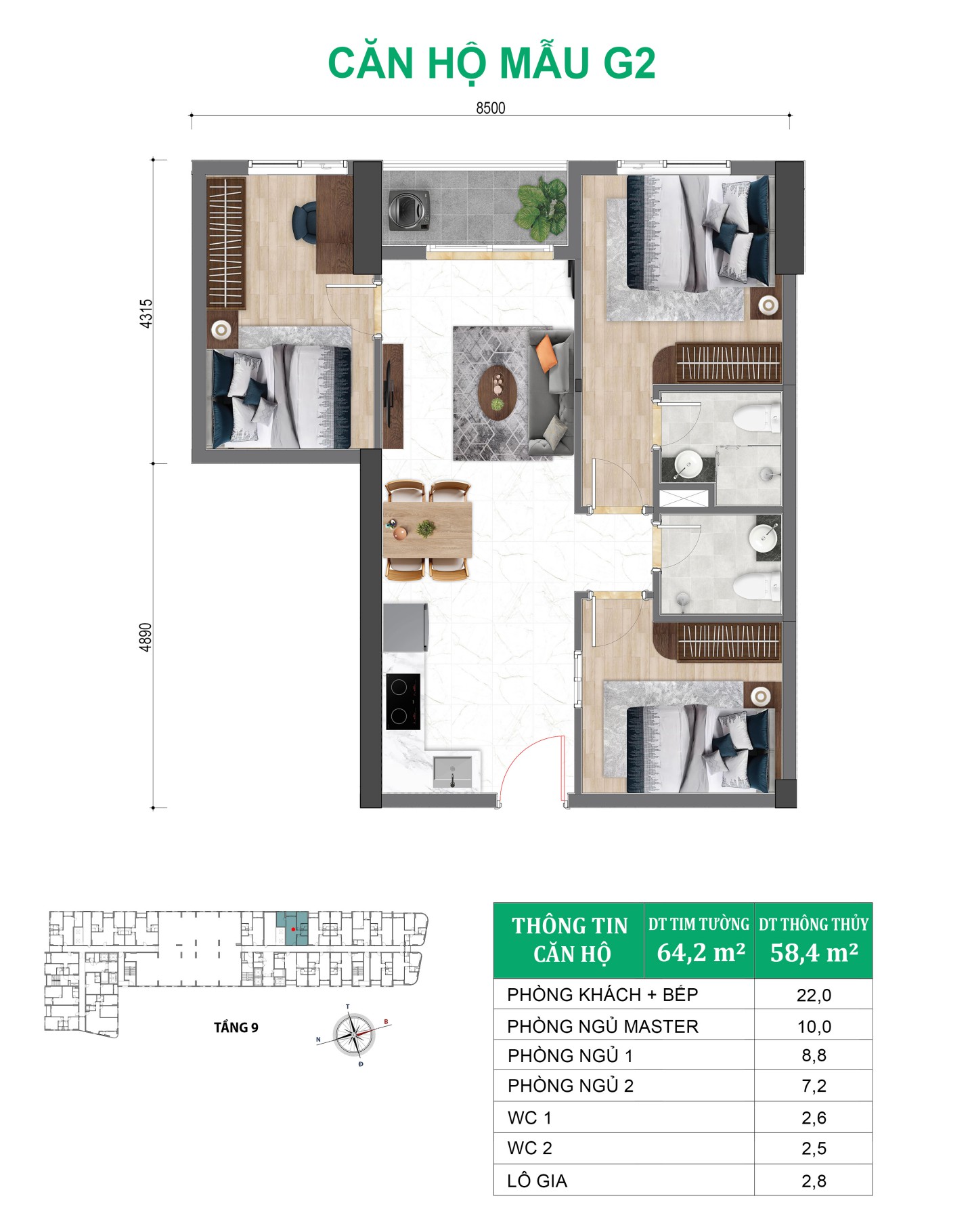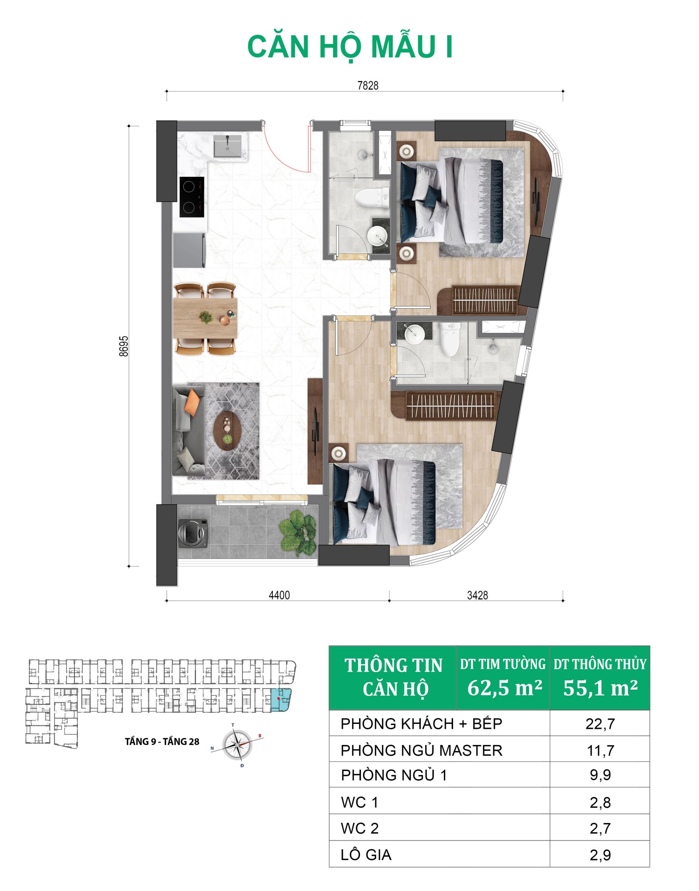 Căn 3PN: 62 – 68 – 78m2 – 91m2